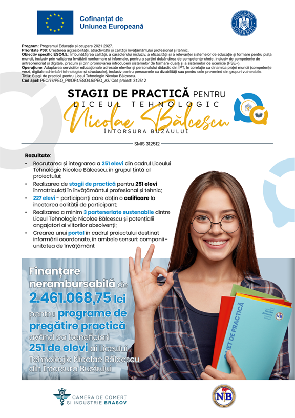 Stagii de practica pentru Liceul Nicolae Bălcescu